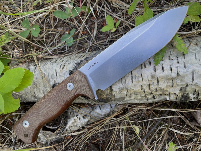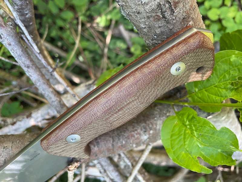 This sturdy knife has a handle 3D milled from a solid piece of Canvas Micarta and the classic drop Point Blade shape is an excellent all purpose design.