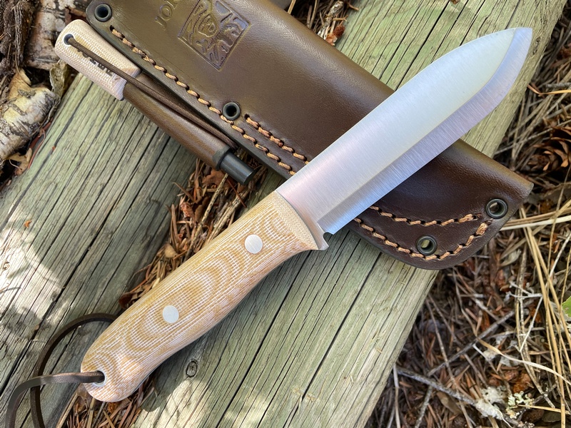 4in Blade of the excellent Swedish Sandvik 14C28N Steel provides you with a tough edge and great corrosion resistance. The Scandi Grind is easy to sharpen and at 58HRC you have a tenacious edge.
