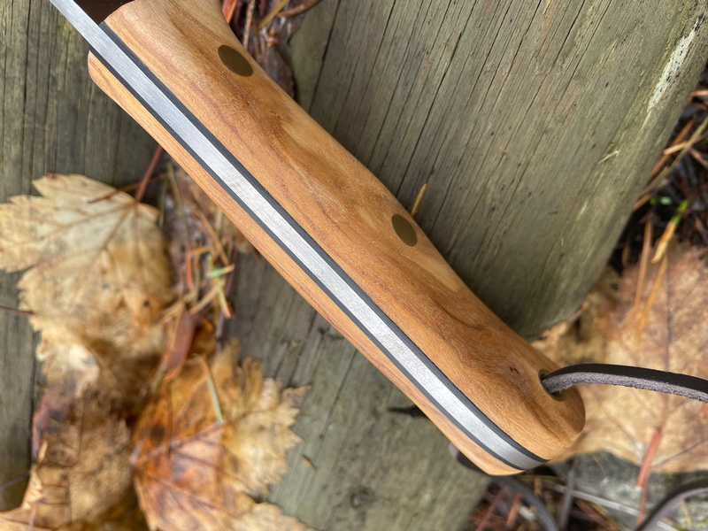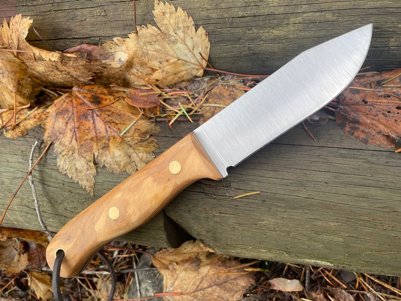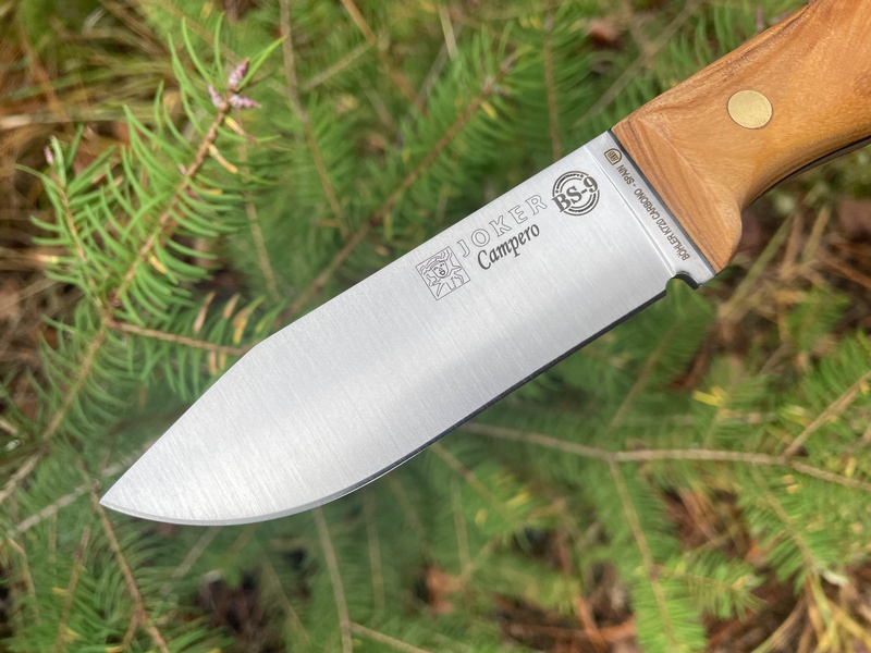 The Joker Campero is an excellent bushcraft and/or hunting blade, full broad tang, brass pins, and a quality leather sheath make this the perfect woods companion. It is very comfortable in the hand and a pleasure to use. The blade profile is a very nicely designed clip point.