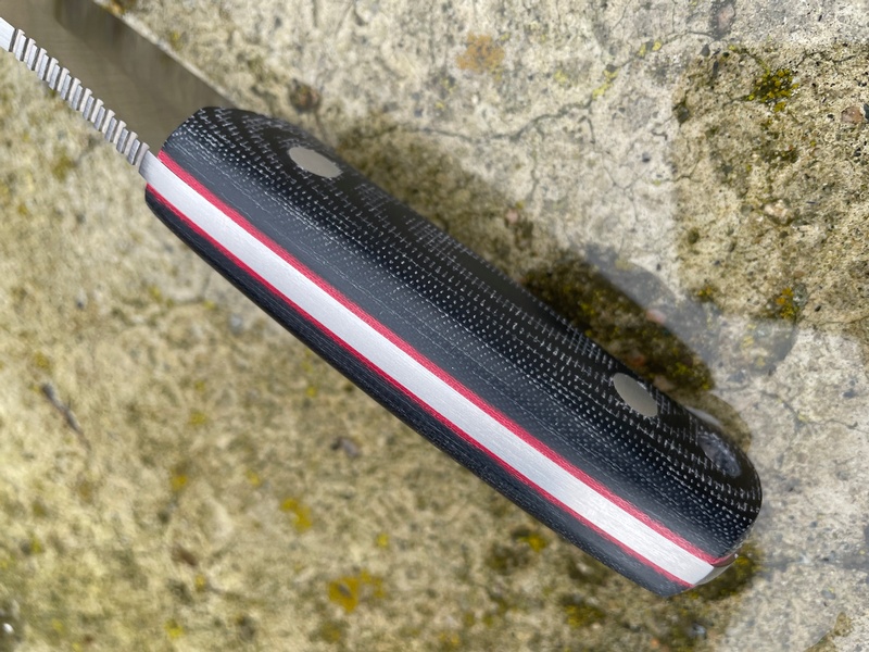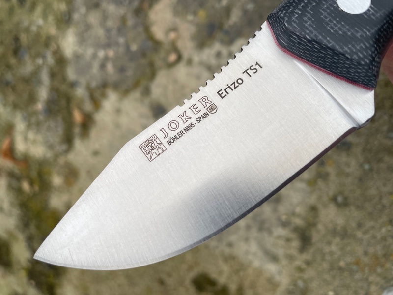 The knife is Full broad tang, and has a good amount of jimping on the top of the blade for better traction. Bohler N695 is a tough, dependable Steel, excellent edge Holding and Corrosion resistance with a Fine, Even Grain.