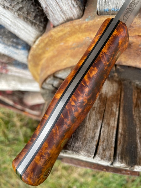 A note on 15N20 Steel: Like all high-carbon steels, it does need a little care: a quick wipe after use and a drop of oil on the blade when not in use. If neglected, it will develop rust — but with just minimal attention, it will stay razor-sharp and dependable for years.