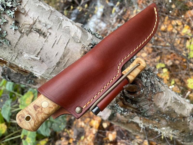 This model also includes a firesteel loop on the sheath and a matching curly birch firesteel!